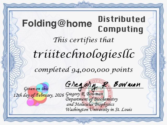 At Triii Technologies LLC, we’ve dedicated a portion of our high-performance infrastructure to support this vital scientific mission. Our systems contribute real-time processing power to the Folding@home network 24/7, assisting researchers as they work to unlock cures and treatments for some of the world’s most pressing health challenges.